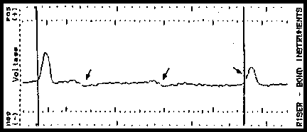 A reflection with the same polarity indicates a fault with OPEN (high impedance) tendencies. The reflection shown at the second cursor is a COMPLETE OPEN.